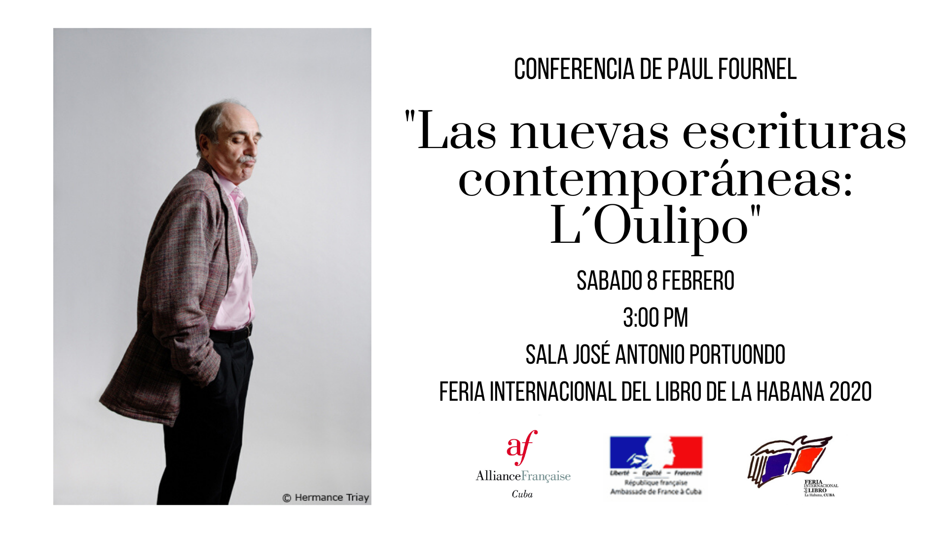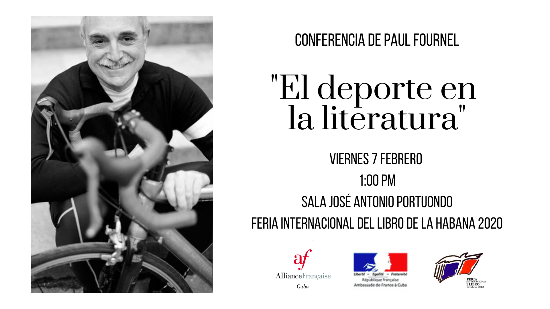 Paul Fournel, escritor, poeta, dramaturgo, editor, Prix Goncourt de la nouvelle et Prix Renaudot des lycéens, ex presidente de la Société des Gens de Lettres y presidente de la Oulipo dio dos conferencias en el Salón José Antonio Portuondo sobre los temas del deporte en la literatura y ded Oulipo.