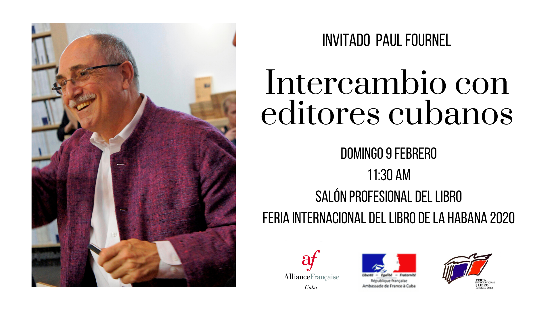 El escritor también participó en la Feria del Libro Profesional, en una mesa redonda presidida por el director de la Alianza Francesa, sobre el tema de la edición de hoy. Lo acompañaron Nancy Morejón, académica, escritora y editora, Premio Nacional de Literatura, Rafael Hernández, académico, director de la Revue Temas y Jesús David Curbelo, catedrático, novelista, poeta, traductor y editor.