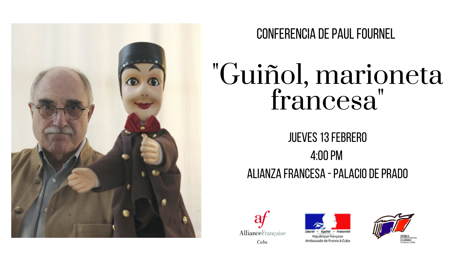 Paul Fournel también dio una conferencia en el Palacio de Prado de la Alianza Francesa titulada «Guignol, marionnette française». Autor de una tesis doctoral sobre el títere de Lyon y de varios libros sobre el tema, incluido Faire Guignol recientemente publicado en CHEZ P.O.L., el escritor es uno de los mejores especialistas en el tema. También facilitó un taller sobre el Oulipo para los profesores de la Alianza Francesa.